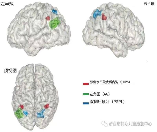 正常儿童完成数量任务时双侧 IPS 同步激活,MLD 儿童仅单侧 IPS 激活,双侧脑区信息整合缺陷,影响数量加工的准确性。