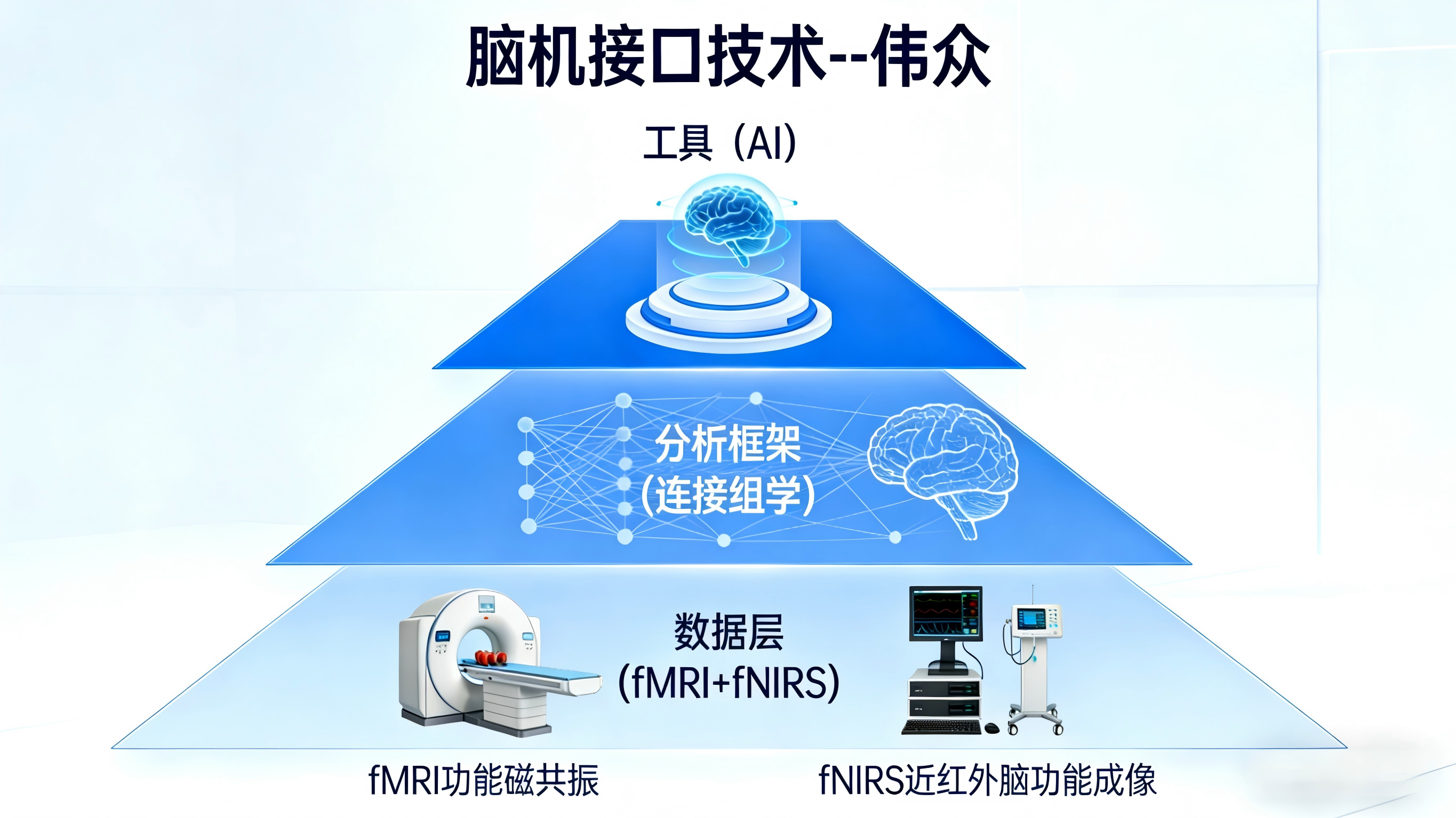 该层采用功能磁共振成像(fMRI)+ 功能性近红外光谱(fNIRS) 双模态联合采集,解决单一技术 “空间 / 时间分辨率不可兼得”“临床适配性不足” 的痛点: